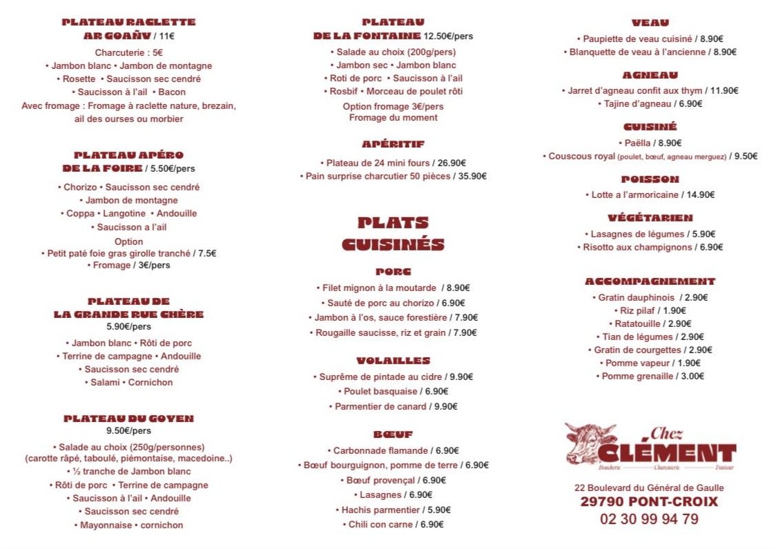 Chez Clément, nous ne faisons pas que de la bonne viande : nous la cuisinons aussi ! Notre service traiteur est là pour simplifier votre quotidien ou sublimer vos événements, sans jamais transiger sur le goût et la qualité. Tout est préparé sur place, directement dans les cuisines de notre boucherie à Pont-Croix, avec les mêmes matières premières de premier choix que celles de notre étal.